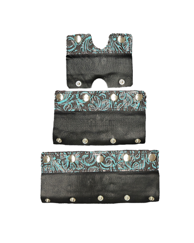 READY TO SHIP - Chopped Teal Black Floral Leather Top LOWPRO Welding Helmet