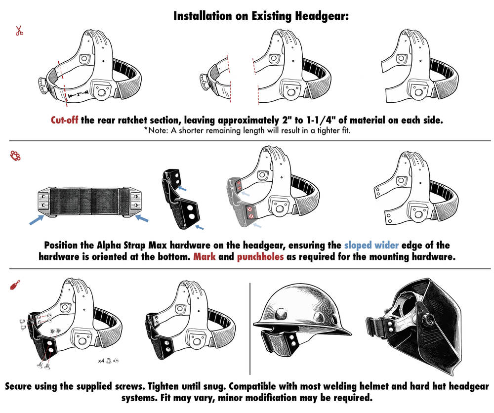 The Alpha Strap Max is our most adaptable headgear strap, engineered for a near-universal fit across the majority of welding helmet and hard hat headgears. Features heavy-duty elastic webbing woven from a premium polyester/spandex blend for a soft, yet highly durable construction. The Heat and impact-resistant ABS hardware is precision-made in-house by our WeldTube3DWorx Dept. ensuring unmatched quality and consistency, while the oversized, non-slip buckle makes strap adjustments easy, gloves on or off.
