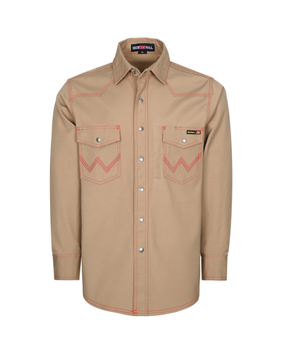 WRANGLER Heavyweight FIRM Fabric Pipeliner Style Long Sleeve Work Shirt, 100% Cotton, Non-FR, Khaki Color