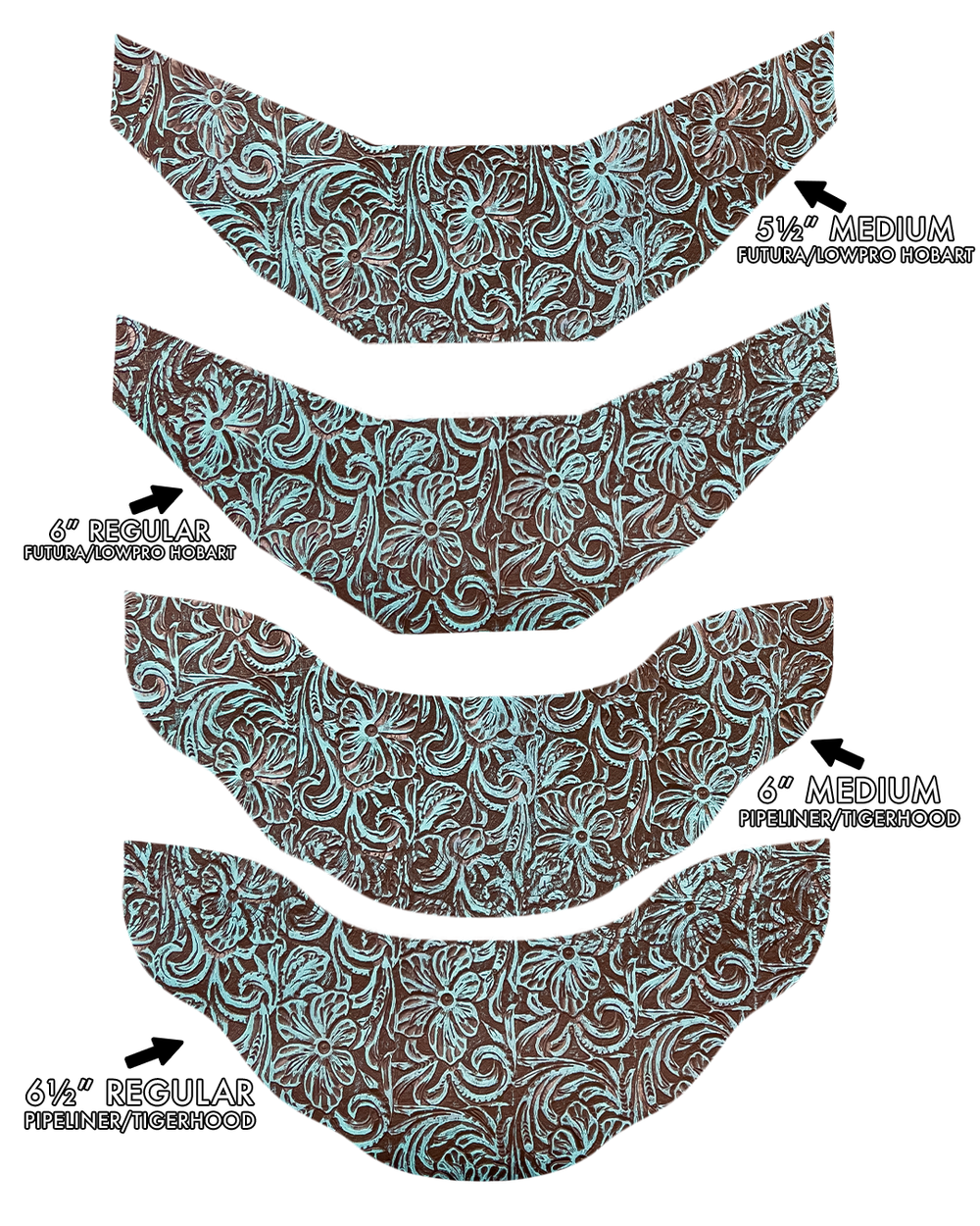 Leather Bottom BEARD Bib for Various Welding Helmets - Teal Black Floral / Pipeliner: Regular 6½” is backordered and will ship as soon as it is back in stock.