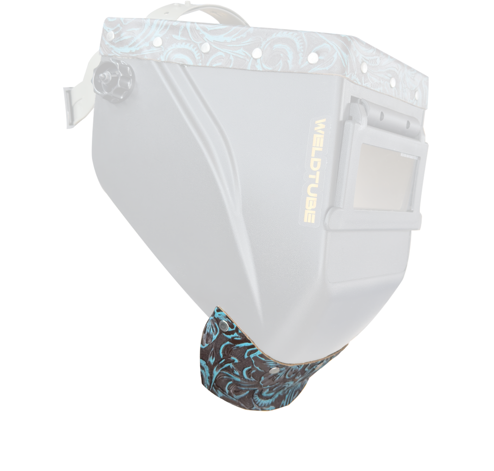 Leather Bottom GOATEE Bib for Various Welding Helmets - Teal Black Floral / Pipeliner Slim Cut is backordered and will ship as soon as it is back in stock.